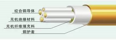 1. 導(dǎo) 體:多股銅線絞合;2. 絕緣層:耐高溫、不燃燒的無機(jī)絕緣材料;3. 銅護(hù)套:縱包焊接并軋紋;4. 外護(hù)層:低煙無鹵材料