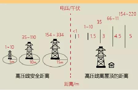 不同電壓等級的高壓帶電線路所必須保持的安全距離,當物體進入這些安全距離時,就會引起放電。根據(jù)《電力設施保護條例實施細則》對安全距離的規(guī)定,1千伏以下高壓線的安全距離為4米;1-10千伏高壓線的安全距離為5米;35-110千伏高壓線的安全距離為10米;154-220千伏高壓線的安全距離為15米。