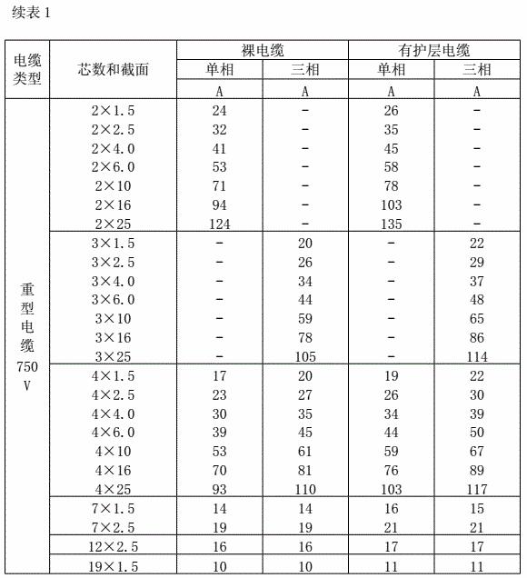 礦物絕緣電纜載流量表