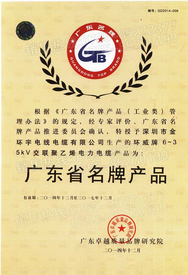 金環(huán)宇電線--廣東省名牌產(chǎn)品