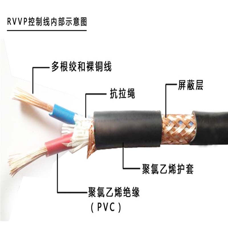 RVVP是一種軟導(dǎo)體PVC絕緣線外加屏蔽層和PVC護套的電纜。RVVP7*0.5平方電纜是7根0.5平方銅芯聚氯乙烯絕緣外加屏蔽和聚氯乙烯護套做成的抗干擾軟電纜。7芯編織屏蔽軟電纜。